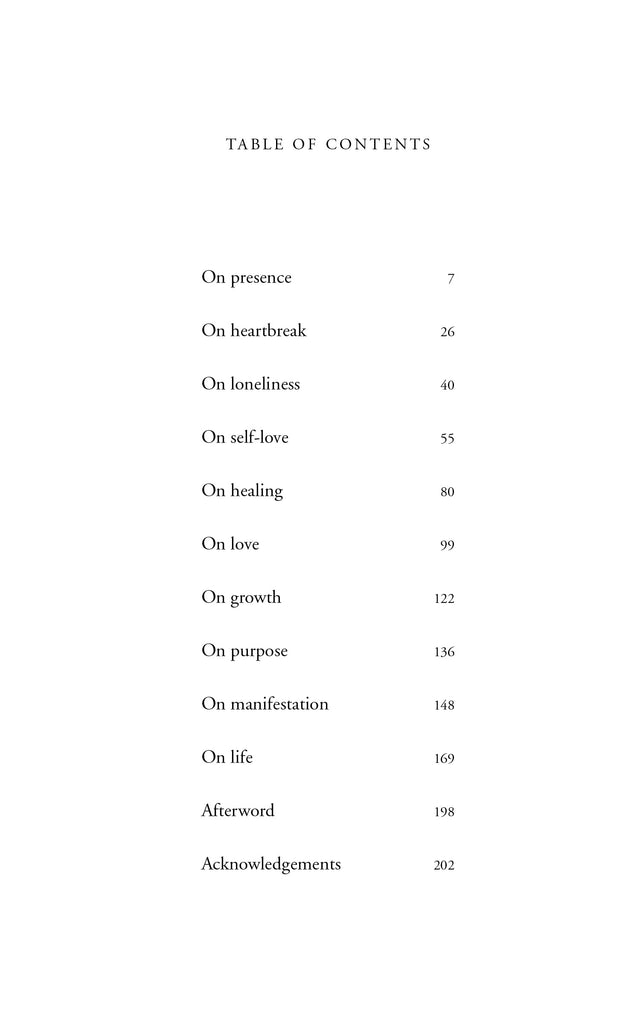 For those who yearn to live in the present moment, who seek reflection through heartbreak, comfort during times of loneliness, or guidance while healing, this book provides you with the words you need to read right now.